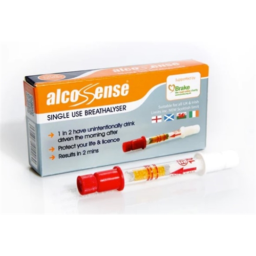AlcoSense Single Use Breathalysers are the only single use breathalyser to not just tell you that you have alcohol in your system, but to also accurately indicate how much. Three rings around the tube represent the three common limits in the UK and Europe; 0.2‰BAC for the Irish Professional Driver Limit and Eastern Europe, 0.5‰BAC for the Scottish, Irish and Continental European Limit and 0.8‰BAC for the English and Welsh Limits.