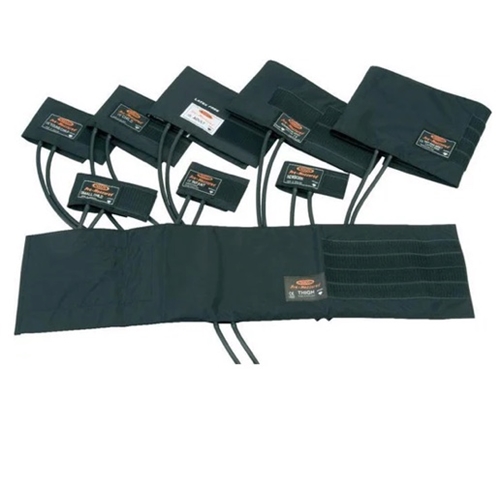 Each cuff is marked with a RANGE-FINDER label to aid the selection of the correct size for the patient, and a label to indicate correct placement over the brachial artery.