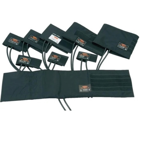 Each cuff is marked with a RANGE-FINDER label to aid the selection of the correct size for the patient, and a label to indicate correct placement over the brachial artery.