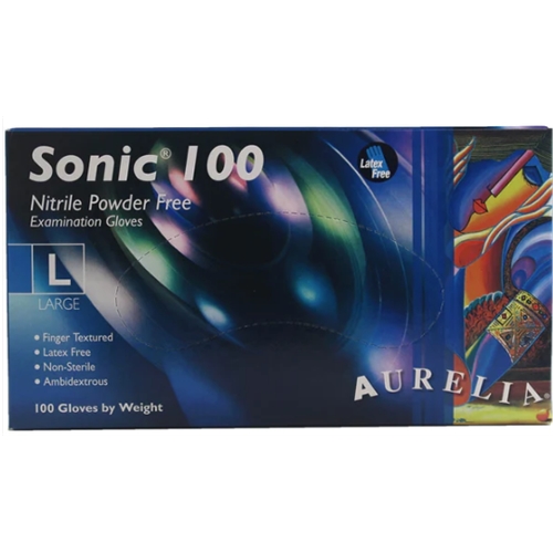 Aurelia Sonic 100 Large Blue Nitrile Powder-Free Examination Gloves - Non Sterile - (100).