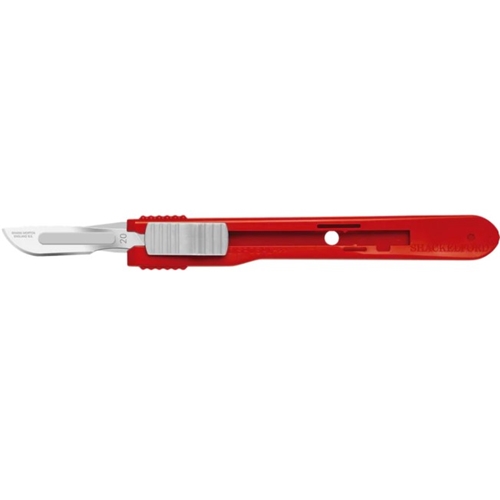 Supporting existing safe passing protocols and procedures the scalpel has a reinforced temporary lock in the forward user position ensuring the blade will stay extended even if it encounters a hard surface or bone during use. When in the retracted position the slider mechanism contains a notch that holds the blade securely in the retracted position. A permanent lock position at the rear of the scalpel, requiring a conscious amount of force to engage the slider, ensures the contaminated blade remains retracted whilst disposing in an appropriate sharps container at the end of the procedure.