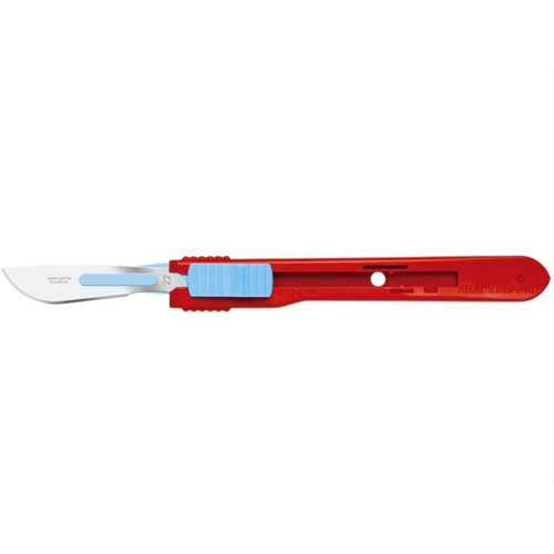 Supporting existing safe passing protocols and procedures the scalpel has a reinforced temporary lock in the forward user position ensuring the blade will stay extended even if it encounters a hard surface or bone during use. When in the retracted position the slider mechanism contains a notch that holds the blade securely in the retracted position. A permanent lock position at the rear of the scalpel, requiring a conscious amount of force to engage the slider, ensures the contaminated blade remains retracted whilst disposing in an appropriate sharps container at the end of the procedure.