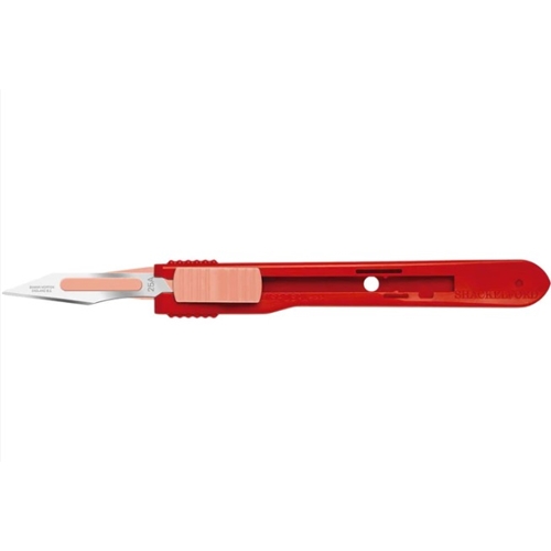 Supporting existing safe passing protocols and procedures the scalpel has a reinforced temporary lock in the forward user position ensuring the blade will stay extended even if it encounters a hard surface or bone during use. When in the retracted position the slider mechanism contains a notch that holds the blade securely in the retracted position. A permanent lock position at the rear of the scalpel, requiring a conscious amount of force to engage the slider, ensures the contaminated blade remains retracted whilst disposing in an appropriate sharps container at the end of the procedure.