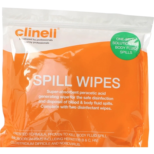 Each patented kit contains a peracetic acid-generating pad suitable for managing any type of body spill up to 350ml. This triggers an oxidative reaction within the pad itself, neutralising all pathogens. Two disinfectant wipes are included to further clean the area. Soiled wipes can then be placed back into the resealable packaging for safe disposal.