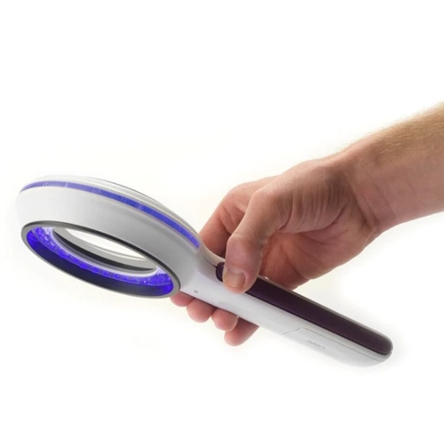 Lumio UV is a modern reincarnation of a Woods lamp. With its 75 mm lens offering a magnification of 2x, the power of 40 UV LEDs (light emitting diodes) Lumio UV is a great tool for a variety of examinations which require UV light.