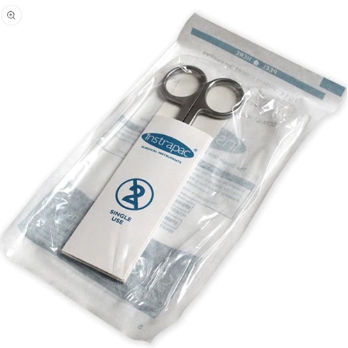 Single Use Sharp/Sharp Dressing Scissors, used as a general scissor to cut small and medium wound dressings. Manufactured from medical grade surgical stainless steel. Supplied in an easy to open, sterile pack.