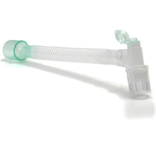 - Double Flip top cap with seal - opening the first tab on the cap allows for the introduction of a fibre optic bronchoscope whilst maintaining airway pressure. Opening the second tab allows for suctioning if required.