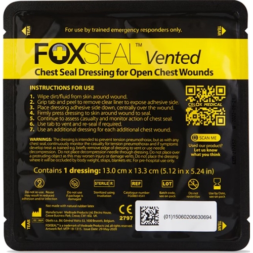 Foxseal Vented Chest Seal is a unique 360 degree hyper-vent system - the first ever chest seal with 512 vents giving you more ways to release pressure, prevent blockages and save a life.