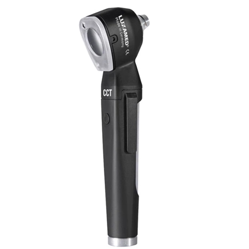 - 2-component handle (aluminum / glass fiber reinforced plastic), can also be combined with LuxaScope dermatoscope CCT LED head