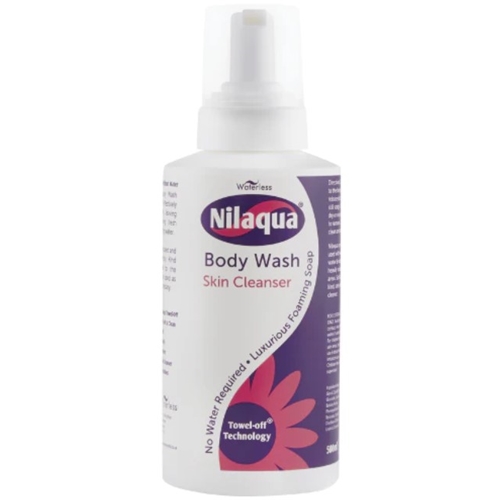 A gentle cleanser providing essential daily care with dignity. Delicate light soap fragrance; the "towel off" foaming, body wash & incontinence cleaner, effectively cleans skin & perineal area's, leaving you fresh and odour free without using any additional water. Can also be used with warm water for heavy soiling. Nilaqua is aerosol free and an all in 1 cleanser to reduce waste and costs. Effectively cleans the dirt, grease, odours and soiling after incontinence episodes, quickly and easily.