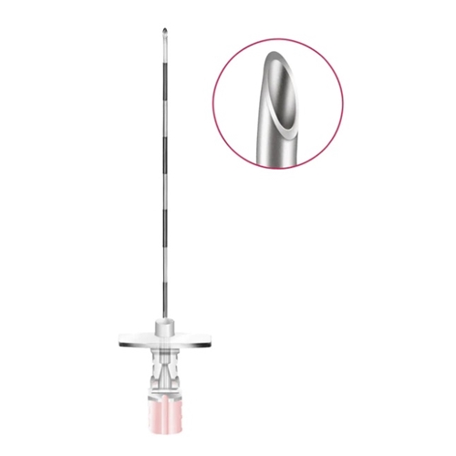 - Colour-coded stylet hub indicating gauge size