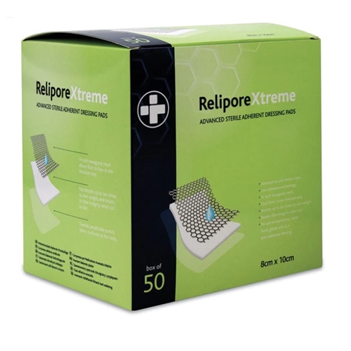 Relipore Xtreme Adhesive Dresing Pads Sterile 8cm x 16cm Box of 50