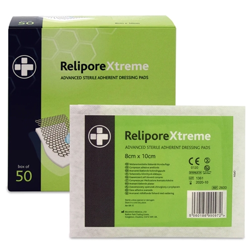 Relipore Xtreme Adhesive Dressing Pads Sterile 8m x 10cm Box of 50.