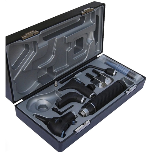 - ri-scope® F.O. otoscope (level 3, prestige), F.O. nasal speculum, F.O. tongue blade holder and F.O. bent-arm illuminator