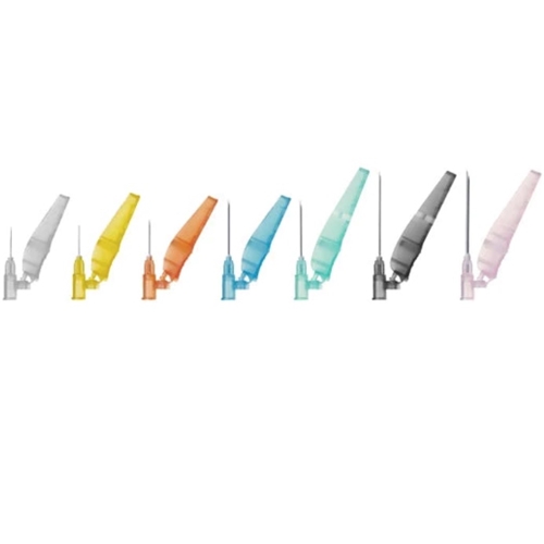 Hubs, protective arms and packaging are color-coded for easy and fast identification of needles.