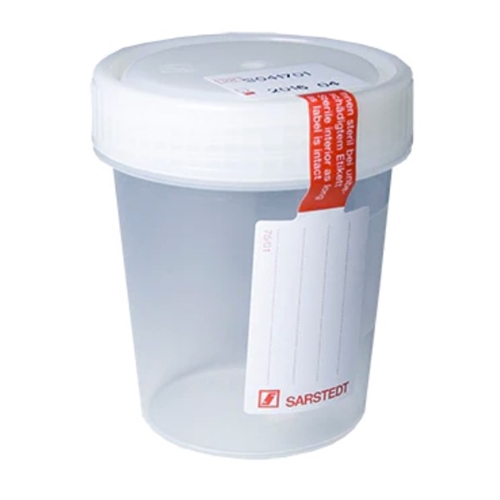 Sterile Cup (100ml). Standard sterile cup, suitable for urine testing where medical tests are to be carried out on the sample. Leak-proof rigid screw top delivered with foil seal suitable for tamper-evidence. This is the cup we use ourselves for our superior range of evidence boxes that are shipped round the world. Includes graduations to 100 ml and frosted panel for writing on.