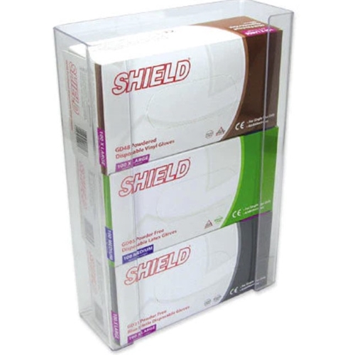 Our hygienic triple glove box holder will leave surfaces clear and clean and will provide a long lasting and easy dispensing solution. Ideal for holding 3 boxes at a time from our disposable glove range.