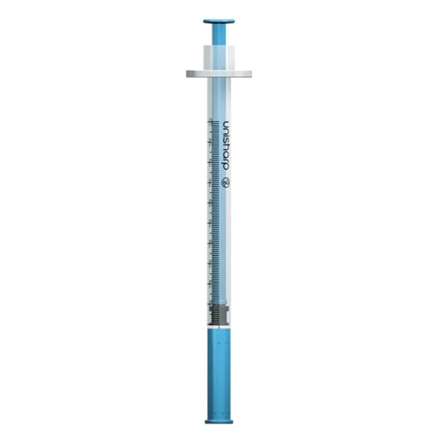 High quality, 1mL fixed needle low dead space syringe with volume markings in mL rather than insulin units.