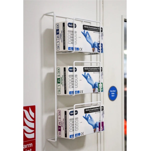 These triple glove dispenser racks are made of plastic and can be wall mounted to ensure that the gloves can be stored and dispensed in a hygienic manner.