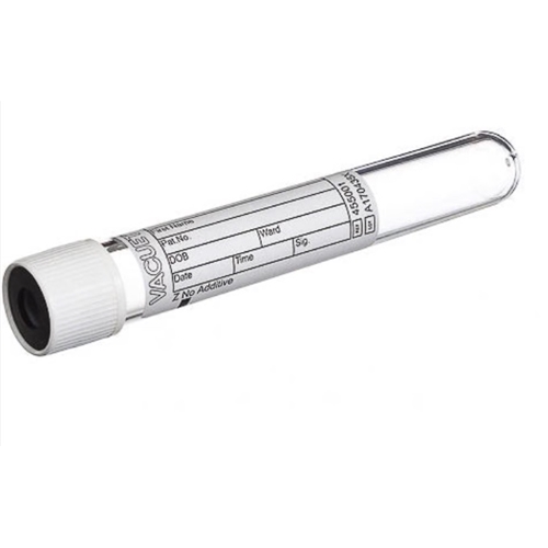 Vacuette 9ml No addv pushCap tube, 16x100mm white cap/black ring sterile- Qty50